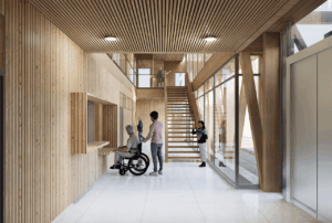 Materialidad: Madera contralaminada – CLT, Pavimentos vinílicos, ventanería en termopanel