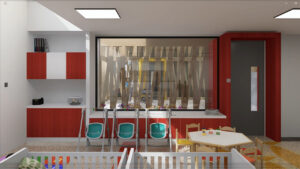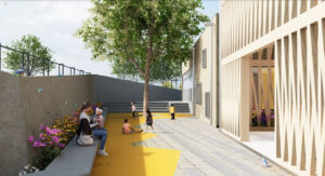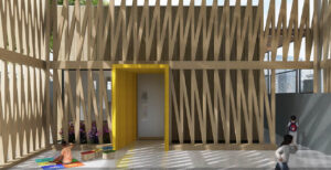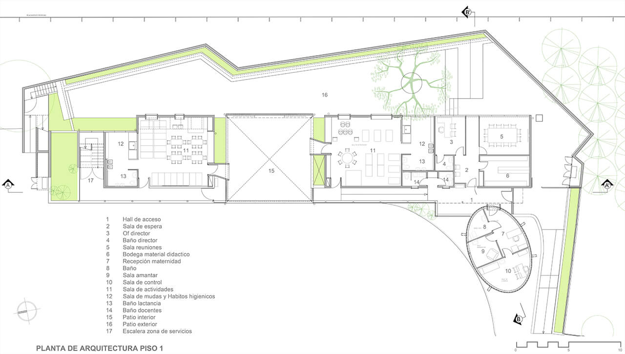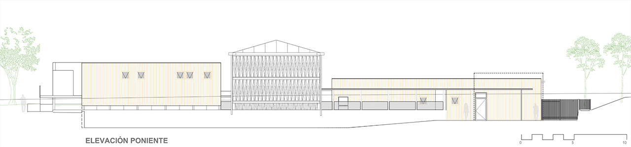 Como lugar protagónico surge el Patio Techado o Nido, de altura mayor y con un perímetro de celosías que regula el paso de la luz y acoge las actividades que se puedan organizar.