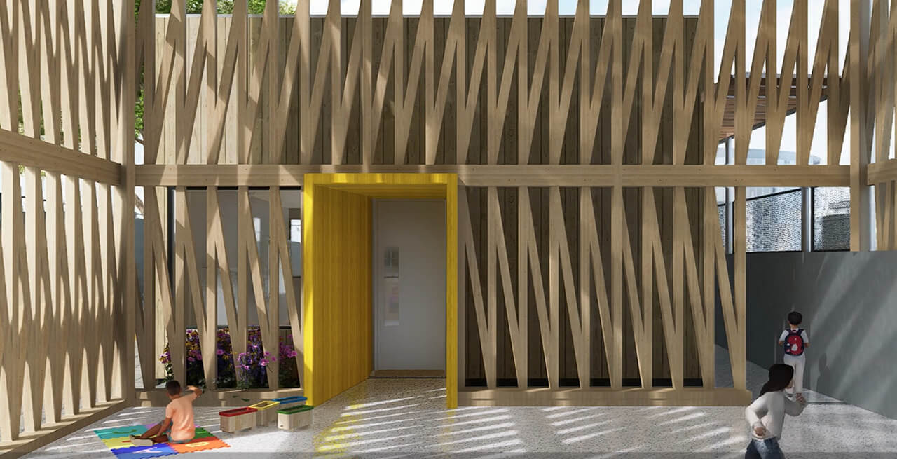 Materialidad: Madera contralaminada – CLT y Vidrio modular – U Glass.